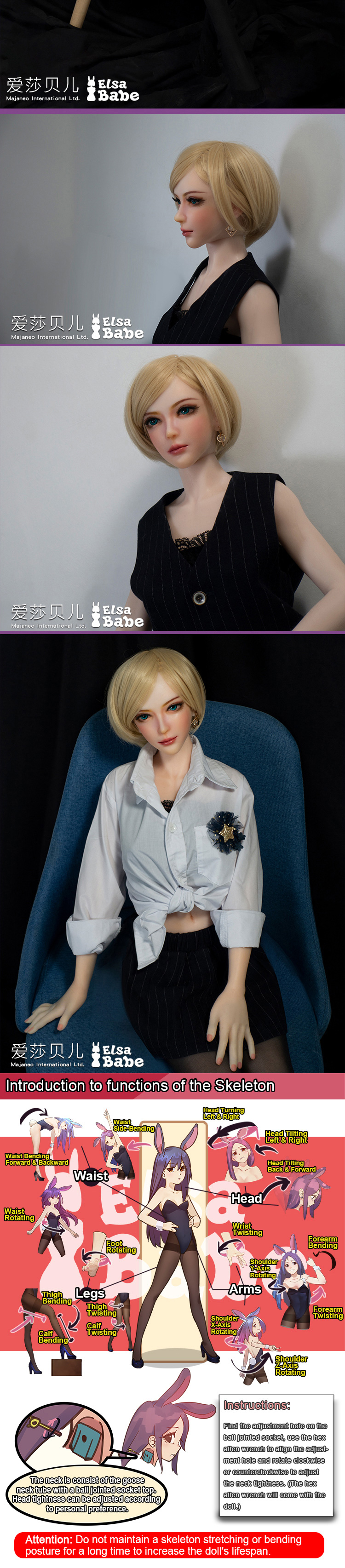 - Material: NON-TOXIC Medical Silica gel Skeleton: Stainless Steel Skin Color: Natural Height: 102cm / 3.35ft Bust: 60cm / 23.6in