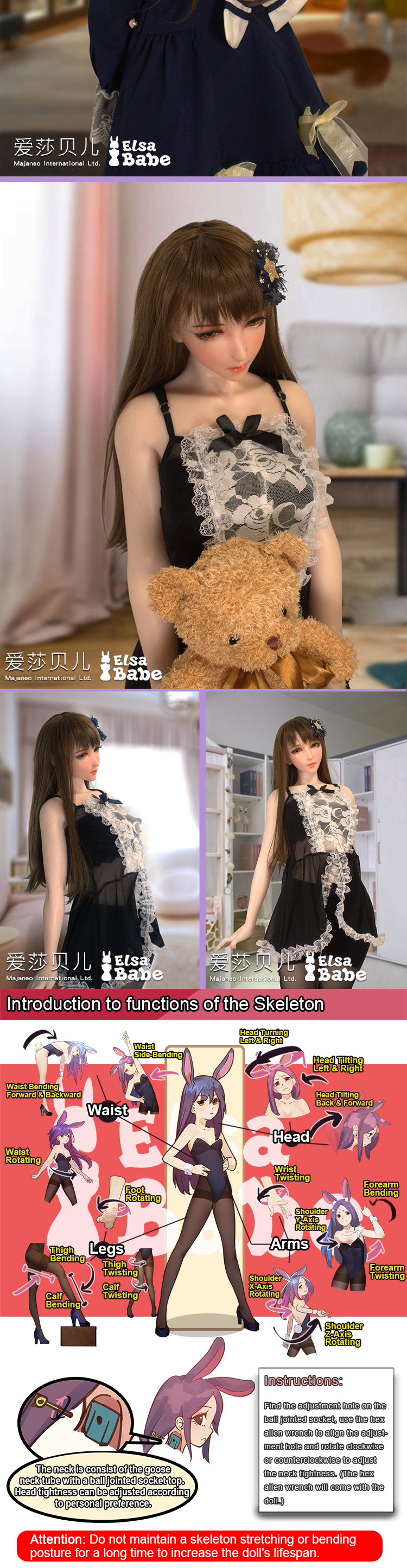 - Material: NON-TOXIC Medical Silica gel Skeleton: Stainless Steel Skin Color: Natural Height: 102cm / 3.35ft Bust: 60cm / 23.6in